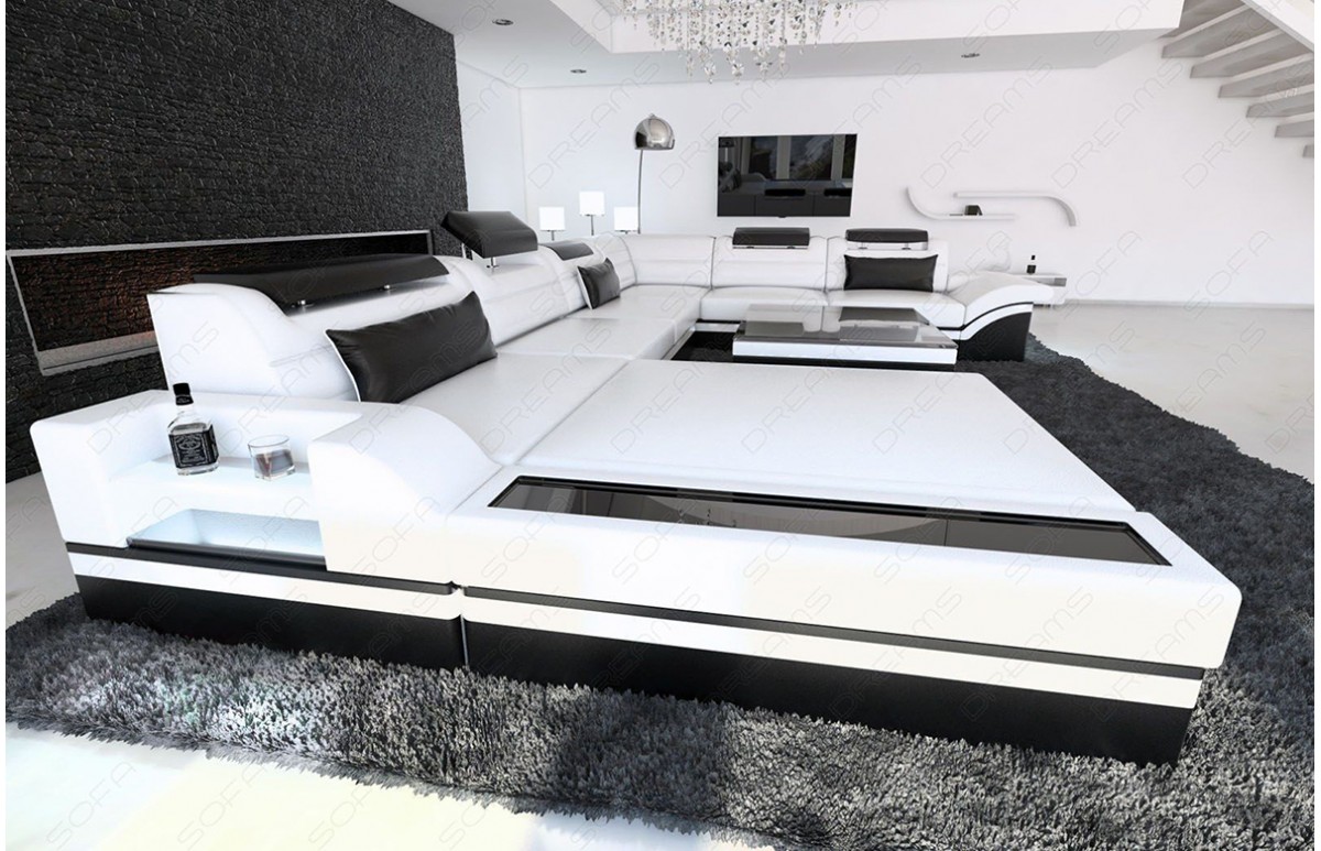 Jedes bestellte Sofa kann zusätzlich mit einer integrierten LED-Beleuchtung ausgestattet werden. Mit der Fernbedienung können Sie bequem Farbe, Intensität oder andere Funktionen der Fernbedienung auswählen.