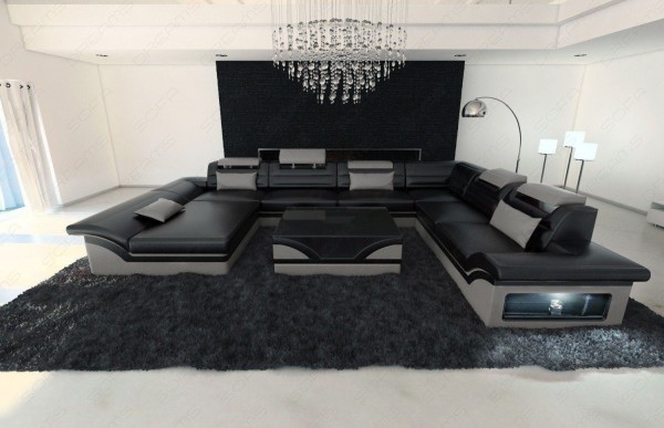 Jedes bestellte Sofa kann zusätzlich mit einer integrierten LED-Beleuchtung ausgestattet werden. Mit der Fernbedienung können Sie bequem Farbe, Intensität oder andere Funktionen der Fernbedienung auswählen.