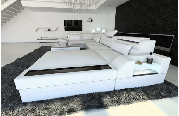 Jedes bestellte Sofa kann zusätzlich mit einer integrierten LED-Beleuchtung ausgestattet werden. Mit der Fernbedienung können Sie bequem Farbe, Intensität oder andere Funktionen der Fernbedienung auswählen.