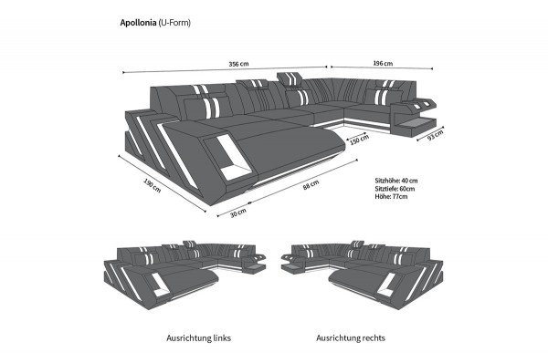 APOLLONIA - U Form, Ausrichtung rechts, Öko-Leder, Schlaffunktion