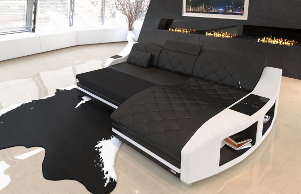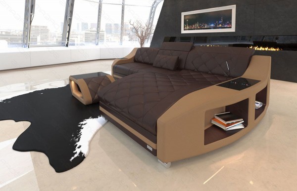 Jedes bestellte Sofa kann zusätzlich mit einer integrierten LED-Beleuchtung ausgestattet werden. Mit der Fernbedienung können Sie bequem Farbe, Intensität oder andere Funktionen der Fernbedienung auswählen.
