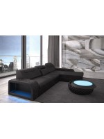 Jedes bestellte Sofa kann zusätzlich mit einer integrierten LED-Beleuchtung ausgestattet werden. Mit der Fernbedienung können Sie bequem Farbe, Intensität oder andere Funktionen der Fernbedienung auswählen.