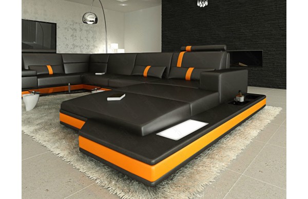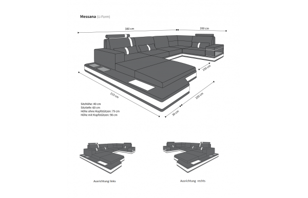 MESSANA (K) - U Form, Ausrichtung rechts, Leder, Schlaffunktion