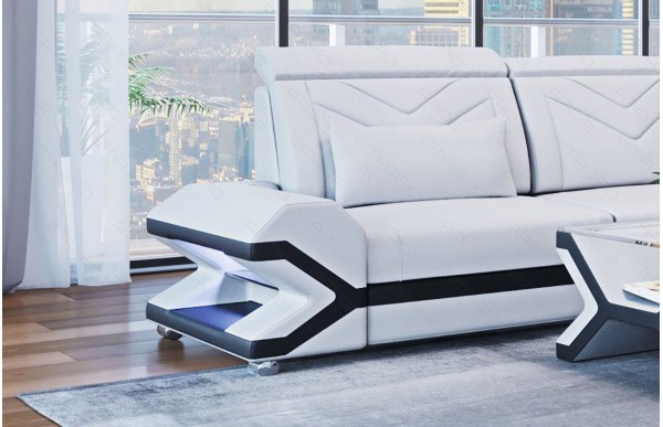 Każda zamówiona sofa może być dodatkowo wyposażona w zintegrowane oświetlenie LED. Za pomocą pilota w wygodny sposób możesz wybrać kolor, intensywność lub inne jego funkcje.