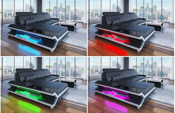 Każda zamówiona sofa może być dodatkowo wyposażona w zintegrowane oświetlenie LED. Za pomocą pilota w wygodny sposób możesz wybrać kolor, intensywność lub inne jego funkcje.
