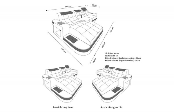 Każda zamówiona sofa może być dodatkowo wyposażona w zintegrowane oświetlenie LED. Za pomocą pilota w wygodny sposób możesz wybrać kolor, intensywność lub inne jego funkcje.