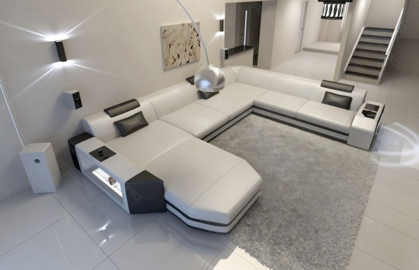 Każda zamówiona sofa może być dodatkowo wyposażona w zintegrowane oświetlenie LED. Za pomocą pilota w wygodny sposób możesz wybrać kolor, intensywność lub inne jego funkcje.