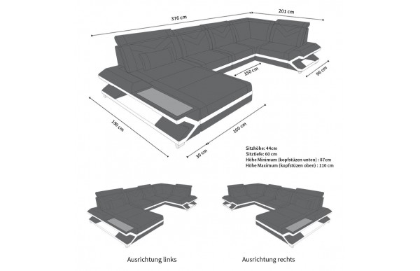 Każda zamówiona sofa może być dodatkowo wyposażona w zintegrowane oświetlenie LED. Za pomocą pilota w wygodny sposób możesz wybrać kolor, intensywność lub inne jego funkcje.